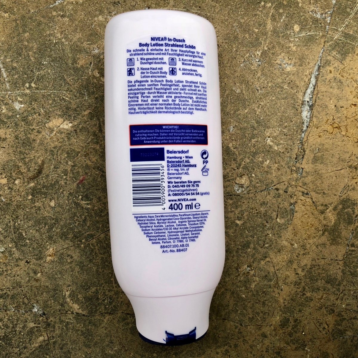 In-Dusch Body Lotion - Strahlend schön - mit Arganöl & sanften Peeling Perlen von Nivea