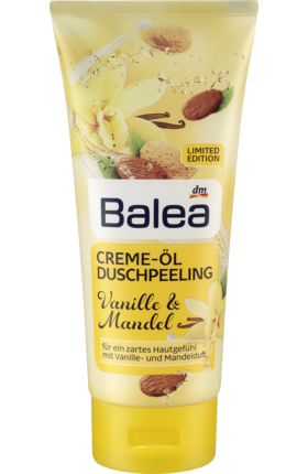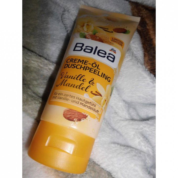 Gesehen,geschnappt und gekauft ... ja so ist das bei mir und LE`s ;-) Ich dachte erst die Peelingkörnchen fehlen,so im Duschpeeling auf der Hand sieht man nichts außer Duschbad aber dann beim verteilen merkt man die kleinen sehr feinen Körnchen,es ist einfach ein Wunderbares Gefühl auf der Haut. Die Haut fühlt sich danach einfach frisch und weich an,sehr gut gepflegt eben. Beim Duft muss ich aber leider sagen das ich von der Vanille nicht viel rieche,die Mandel nimmt man da schon eher wahr wobei ich denke das die Vanille die Mandel etwas mildert,weil es wirklich ganz fein und dezent ist also nicht erdrückend. Ich finde das Peeling toll und werde es sicher noch mal kaufen um im Winter genug zu haben. ;-)