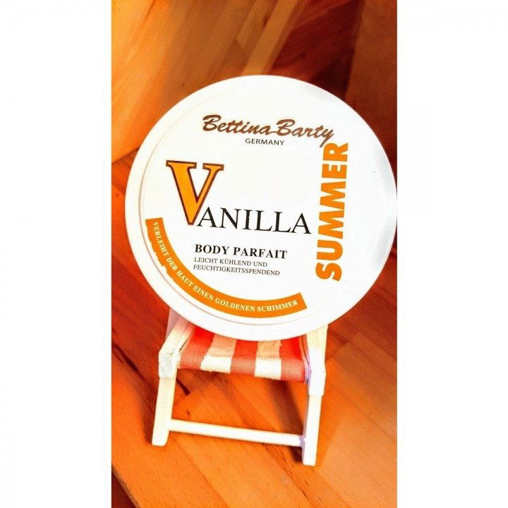 Endlich im Urlaub, kam das Parfait dann rasch zum Einsatz. Nur war der Duft nicht ganz so wie erhofft: puh, was ist das denn für eine Alkoholfahne?! Jaaa - mit etwas gutem Willen läßt sich irgendwo, irgendwie auch etwas von dem vertrauten Summer-Vanilla-Duft erkennen. Doch so vermengt mit dem vorherrschenden Alkoholgeruch wird es eine komische, für meine Nase auch leicht muffige Mischung. Nicht sonderlich überzeugend, und etwas klebrig ist das Ganze auch. Einen kühlenden Effekt hat das Parfait, doch schon ein wenig zuviel und schon krümelt es ganz gewaltig auf meiner Haut. Und zuviel habe ich fast immer genommen, weil die sonnenverwöhnte Haut durstig und die feuchtigkeitsspendende Wirkung des Parfaits begrenzt ist. Golden schimmern tut es bestenfalls ein wenig in der Dose, leider nicht auf der Haut.