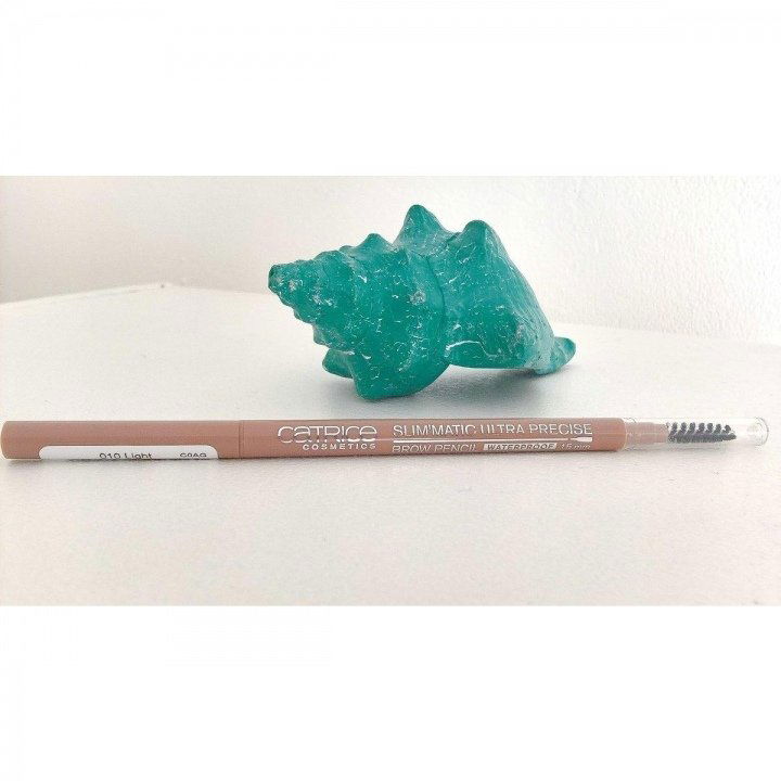 Dieser herausdrehbare Augenbrauenstift hat eine 1,5 mm schmale Mine. Damit ist er geeignet, um fein zu stricheln. Vermutlich gibt es auf diesem Gebiet noch bessere Produkte, aber im Vergleich zum ordinären Stift finde ich den hier schon sehr gut, man merkt den Mehrwert: Das Ergebnis ist immer sehr natürlich, ohne dass man vor jedem Benutzen frisch anspitzen muss (das erübrigt sich, was sehr angenehm ist).