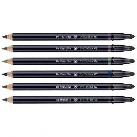 Ausnahmsweise bin ich mal mit einem Hauschka-Produkt überhaupt nicht zufrieden, obwohl ich diese Marke normalerweise sehr schätze. Aber erst mal zu den Formalien: Es gibt den Eye Definer in 6 Farben (schwarz, braun, blau, grün, taupe, violett) und er kostet deftige 13 € bei einem Inhalt von 1,05 g. Der Stift hat außerdem ein Schwämmchen zum Verblenden dabei.