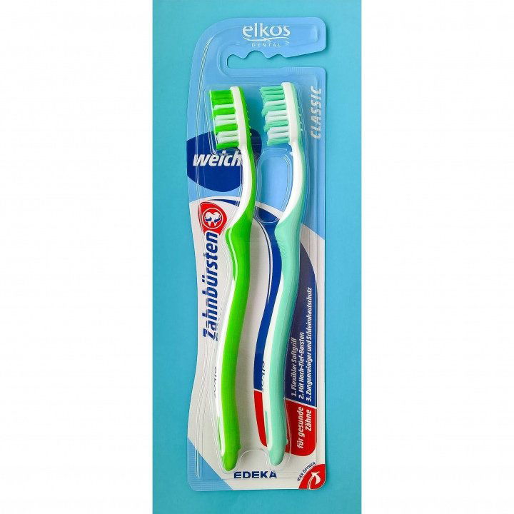 Was ich über die mittelweiche Variante dieser Zahnbürsten gesagt habe, gilt auch für die weiche: Sie ist eindeutig der Colgate Extra Clean Classic nachempfunden.