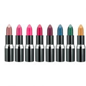 Zum einen Rosé- und Beerentöne, aber auch gewagtes Türkis und Gold sind bei diesen metallisch-glänzenden Lippenfarben umgesetzt worden.