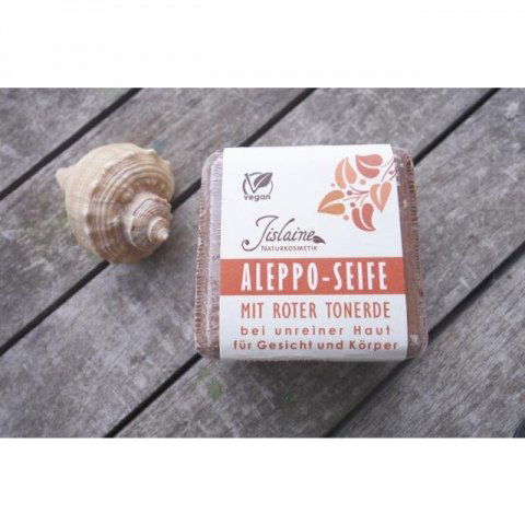 Die Jislaine Aleppo Seife mit Roter Tonerde steht in der Tradition klassischer Aleppo-Seifen, die sich durch besondere Purheit, traditioneller Siedetechnik und einem speziellen Mischverhältnis der enthaltenen Öle auszeichnet. Das Ganze ist mir überaus sympathisch, zumal dieses Produkt von Jislaine tatsächlich in einem Dorf in der Nähe der Stadt Aleppo hergestellt wird.
