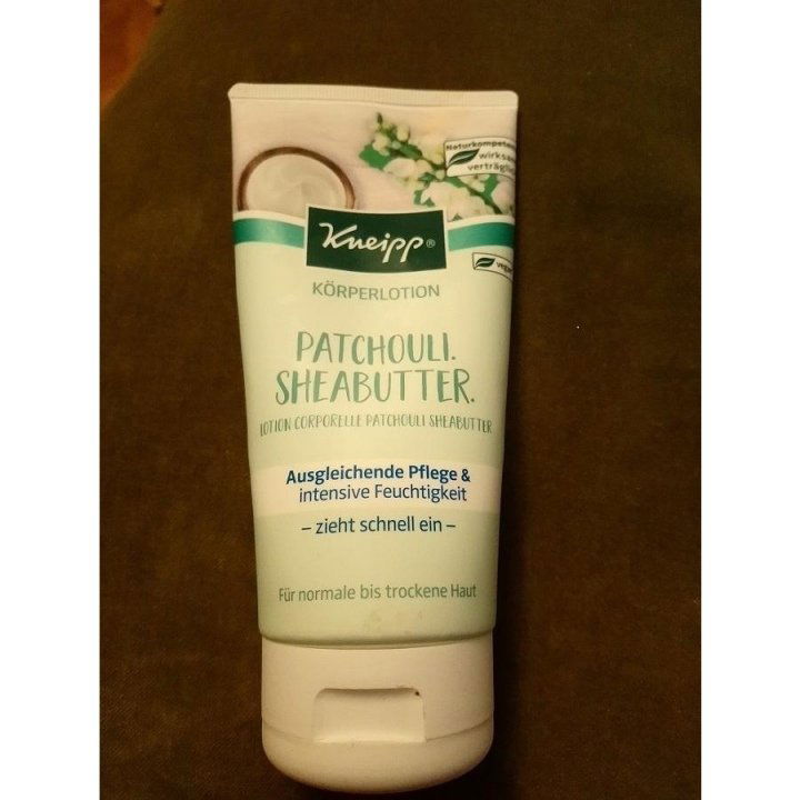Das sprang mir in der Drogerie als Erstes in Auge: wow, mal keine Zuckerwatte-Fruchtbombe-Mandel-Mädchengedöns-Duftrichtung, und Kneipp macht in der Regel ganz ordentliche Sachen. Also, Inhaltsstoffe gecheckt: KEIN Coumarin, sehr gut; kein Olivenöl, sehr gut. Vorsichtig an der offenen Tube geschnuppert; ok, sehr dezent, keine Parfumbombe, gut, zur Kasse also.