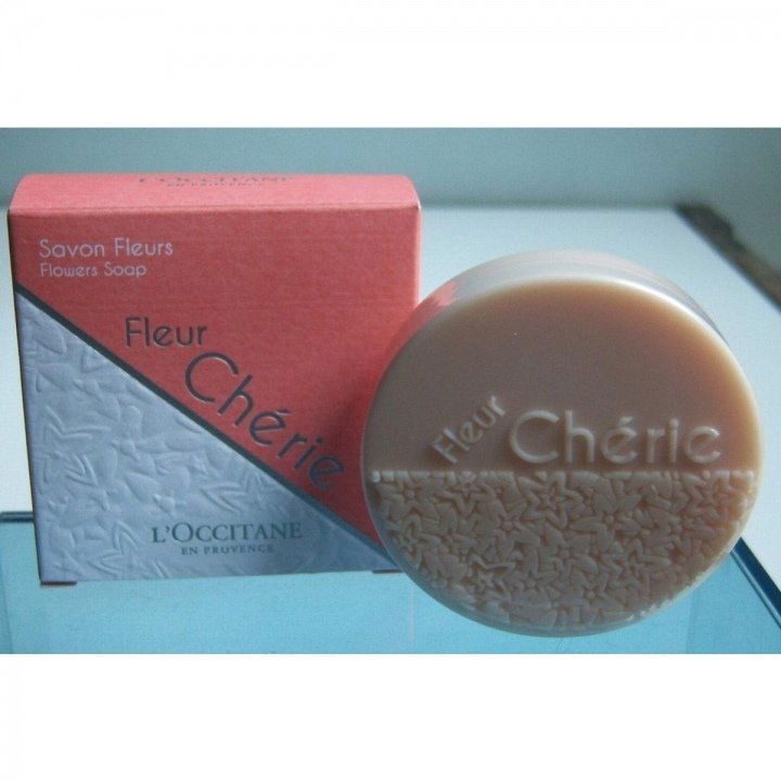 Zum gleichnamigen Parfum gibt es diese wundervolle Seife von L’Occitane. Google sagt, die Übersetzung für ‚Fleur Chèrie‘ wäre Honigblume, die Duftnoten für das Parfum werden aber mit zitrischen, grünen und fruchtigen Noten angegeben, wobei Orangenblüte und Orangenblütenwasser fett hervorgehoben sind. Ich kann nicht sagen, was es nun wirklich ist, außer dass die Seife, als ich sie damals geschenkt bekam, sehr intensiv und betörend blütig roch. Und zwar schon aus der Verpackung heraus. Deshalb durfte sie erstmal für ein paar Monate meinen Badschrank beduften. Erst in, dann außerhalb der Schachtel. Das war jedesmal wieder ein Freudenfest für die Nase, wenn ich die Schranktür öffnete.