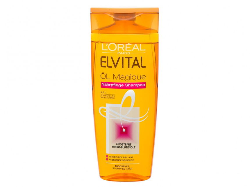 Vor einigen Monaten stellte meine Frisörin bei mir trockenens Haar fest (Ich habe meine Haare seit Monaten wachsen lassen), weshalb ich auf der Suche nach einem anderen Shampoo war. Die DM -Mitarbeiterin zeigte mir das Elvital - Öl Magique Nährpflege Shampoo. Dieses enthält 6 kostbaren Mikro-Blütenöle, welche das Haar nähren und zu fleißender Seidigkeit verhelfen sollen, ohne zu beschweren. Der Duft des Shampoos finde ich angenehm warm und meine Haare werden auch gut gereinigt und im trockenen Zustand fühlen sie sich weich und geschmeidig an, sehen gesund und kräftig aus und haben kein Spliss. Neulich beim Frisör wurde meine Länge auf meinen Wunsch hin etwas gekürzt (schulterlang) und etwas durchgestuft und die Frisörin lobte mein gesundes, kräftiges und gepflegtes Haar. Mal abwarten wie der Sommer wird und es kann sein, dass dann mein Schopf andere Bedürfnisse hat und ich dann wieder die Pflege wechseln werde.