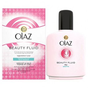 Ich habe das Beauty Fluid jetzt auch probiert. Allerdings habe ich mich für die Version für empfindliche Haut entschieden. Meine Haut reagiert auf zu viel Mineralöle und Silikone in Cremes, so dass ich sehr oft gar nicht creme. Wenn ich die falsche Creme benutze schuppt meine Haut und brennt auch leicht. Später bekomme ich oft kleine Pusteln. Aber ich merke sofort ob meine Haut auf etwas reagiert oder nicht. Das Olaz Beauty Fluid für empfindliche Haut duftet fast gar nicht. Finde ich auch gut. Parfum gehört bei mir nicht ins Gesicht, es sei denn, es ist ein reines ätherisches Öl in der Creme, das pflegende Eigenschaften hat, wie Rosenöl oder Lavendelöl. Nun, diese Lotion duftet fast nach nichts. Die Konsistenz ist die einer leichten Feuchtigkeitslotion. Sie ist zunächst etwas feucht auf der Haut, zieht aber innerhalb von 30 Sekunden ein. Ich habe nur eine erbsengroße Menge verwendet. Was bleibt ist ein sanftes, mattes und samtiges Hautbild. Fühlt sich einfach sehr angenehm an. Meine Haut ist momentan etwas gereizt und ich habe das Gefühl, das diese Lotion genau das Richtige ist, um sie zu pflegen. Die Lotion hat scheinbar wenig Fettanteil. Aber ich habe nicht das Gefühl, das die Haut unterversorgt wäre. Sie fühlt sich einfach gut an. Das Beauty Fluid ist eine super Make-Up Grundlage, aber es macht sich ganz ohne alles ebenfalls wunderbar auf der Haut. Ich benutze sie auch Abends. Eventuell werde ich sie mit einem Serum kombinieren, wenn ich es mal reichhaltiger möchte. Jetzt muss ich auch noch den Knallerpreis von etwa 4-5 Euro erwähnen, bei 200 ml Fluid. Da werde ich ewig mit hinkommen. Hätte ich früher probieren müssen. Aber mir schien sie auch zwischenzeitlich vom Markt verschwunden gewesen zu sein.