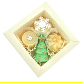 Ihr merkt,ich konnte nicht widerstehen! Die kleine cremefarbene Packung beinhaltet 4 kleine Badepralinen. Eine schöner als die andere.Verziert ist jede mit einem weihnachtlichen Dekomotiv ,zusätzlich findet man einen kleinen Tannenbaum. Auch diese Pralinen sind für trockene und angespannte Haut zu empfehlen. Duftbeschreibung...von blumig,Zimt mit Apfel,Tee mit Bambus,Kräuter,Zitrus und Moschus bis blumig mit Rose,Hölzer,Freesie und Orchidee. Auch hier der Preis 4,99€.