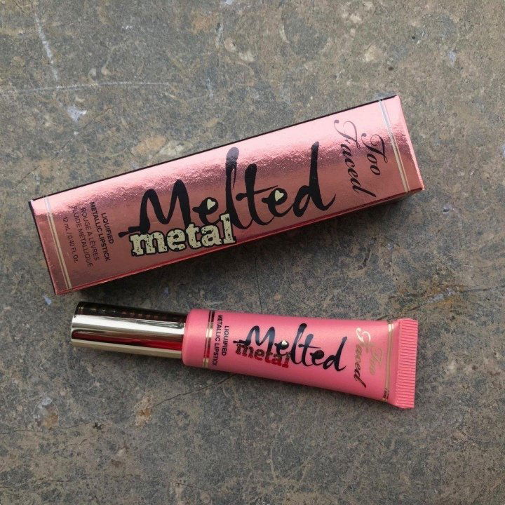 Da die Marke "Too Faced" ja derzeit vor allem wegen der "Better Than Sex"-Mascara und der "Chocolate Bar"-Lidschattenpalette total gehyped wird, will ich sie mir auch mal anschauen. Da ich schon oft bei Tk maxx Produkte gesehen hatte, habe ich da natürlich zuerst mein Glück probiert und bin fündig geworden. Bei Douglas online gibt es ebenfalls Produkte dieser Marke. Diesen Lipgloss gab es in dieser Farbe und in Lila. Da Lila sehr schiefgehen kann, habe ich mich für diesen kupferfarbenen Gloss entschieden, weil ich mir da sicherer war, dass er mir steht. Der Lipgloss ist in einer Tube mit einer Art Schwämmchen zum Auftragen. Es lässt sich gut auftragen, riecht ganz leicht süßlich und die Lippen sind mit einem zarten Schimmer und ein bisschen Farbe überdeckt. Mir gefällt der Gloss sehr gut.