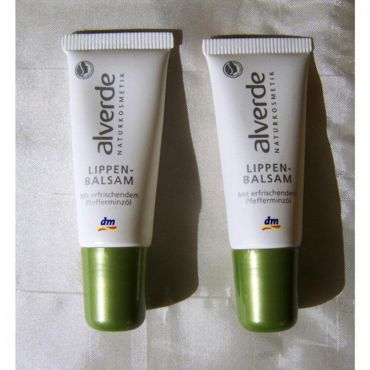 Der Lippen-Balsam von alverde enthält Pfefferminzöl und das merkt man auch. Der kühle Hauch ist sofort zu spüren und kann sein gutes Werk tun. Wäre nicht die etwas glitschige Textur, würde ich häufiger zu dem Balsam greifen. Aber zumindest nach Bedarf wird ordentlich auf die Tube gdrückt.