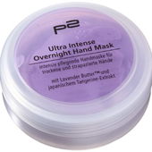 Die Handmaske von P2 ist wirklich klasse. Es handelt sich um eine recht dicke Creme in einem ansprechenden Lila-Ton. Sie enthält Sheabutter und Lavendelbutter. Den Lavendel kann man auch deutlich riechen; er duftet aber nicht so stark, daß es unangenehm wäre. Man trägt die Creme abends dick auf die Hände auf und zieht dann vorsichtig ein paar dünne Baumwollhandschuhe drüber. Die gibt es ebenfalls von P2, man kann aber natürlich auch jede andere Marke nehmen. Ich habe die von P2 dazu gekauft, weil sie nicht teuer sind und sich prima auswaschen lassen. Die Creme zieht dann über Nacht ein und man kann sich morgens über superweiche, zarte Hände freuen. Tip: Die Maske funktioniert auch gut an den Füßen: Abends nach dem baden und entfernen der Hornhaut eincremen und ein paar dünne Baumwollsöckchen anziehen. Morgens hat man dann gepflegte Vorzeigefüße!
