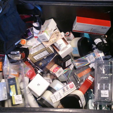 Heute so um zwei herum angekommen, und es wurde gerade eine Kosmetik-Lieferung einsortiert. Ich durfte "Wühlen Sie sich einfach durch!".