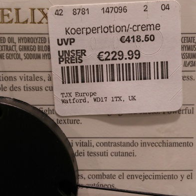 Außerdem aus der Schubkarre rausgefischt: "Intensive Concentrate for Stretch Marks & Wrinkles", nach dem ich auch schon länger auf der Suche bin, weil meine Tube leer wird. Ist diesmal die doppelte Größe (= doppelter Preis) und war auch ein Einzelstück. Ansonsten gab es heute recht viel von der Retinol-Linie von StriVectin.